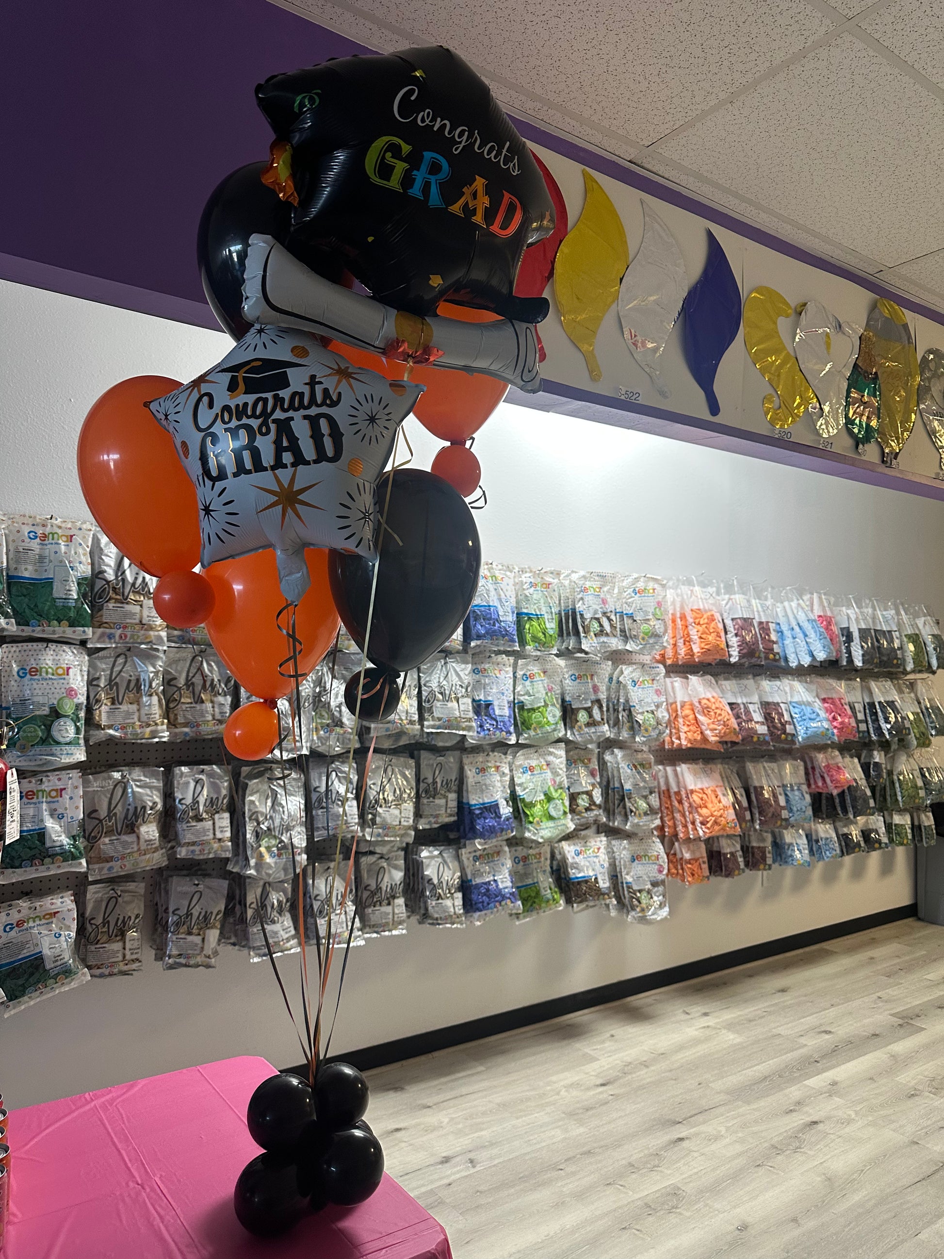 Note: For best results, pick up your helium bundle on the day of your event. Store it indoors, away from direct sunlight, and avoid leaving it in your car. We recommend making us your last stop before heading to your destination.